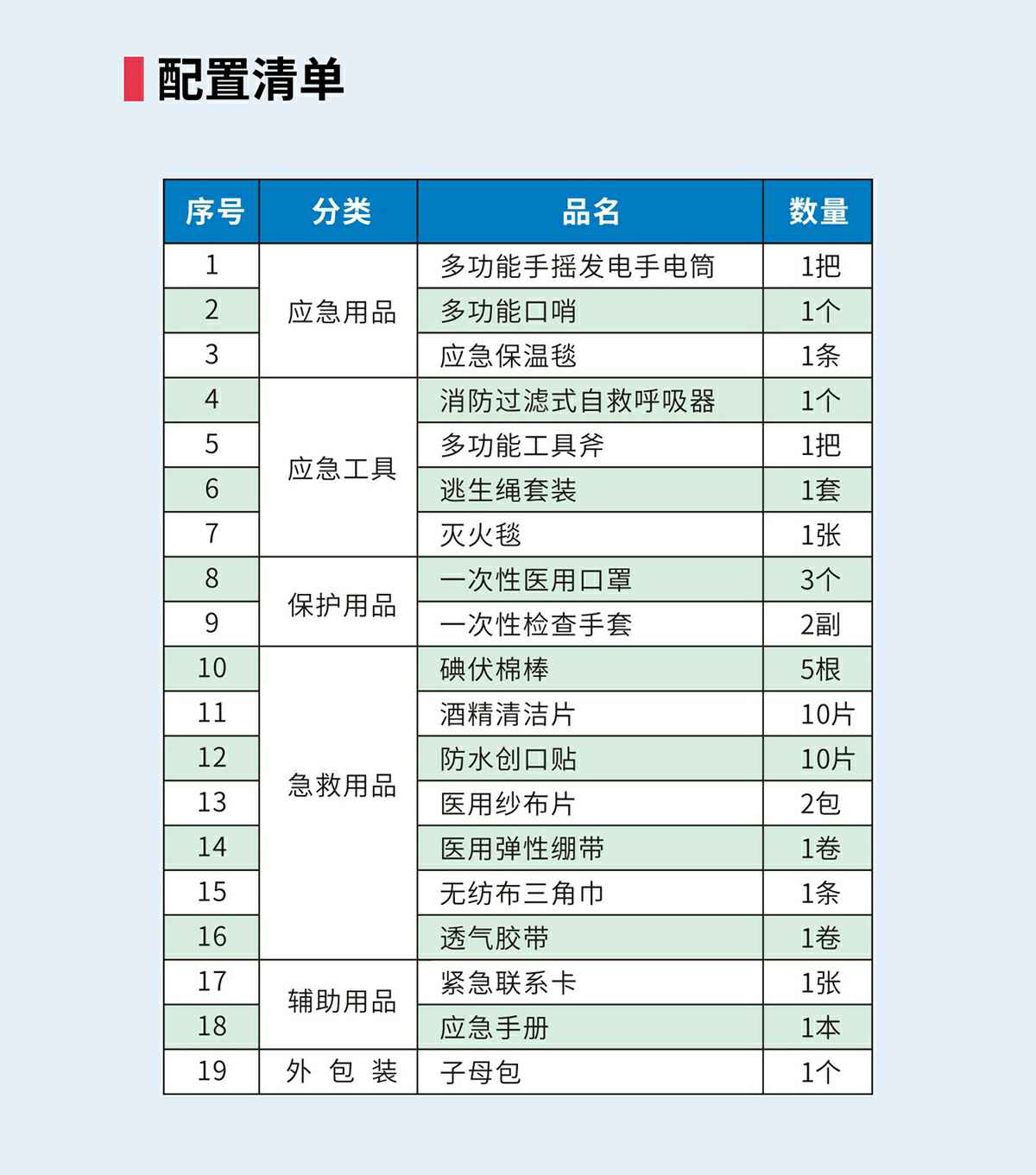 日常生活难免擦碰损伤,尤其是有老人、儿童的家庭,配备了各种高标准急救用品的应急保健包已经成为安全生活必必需品,将为第一时间的救护赢得最宝贵。